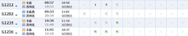 长春到苏州没有直达飞机,要先到上海,再转车,所以不如直接坐火车去了,一共有8个车次,高铁大概11小时到,二等座票价839元。
